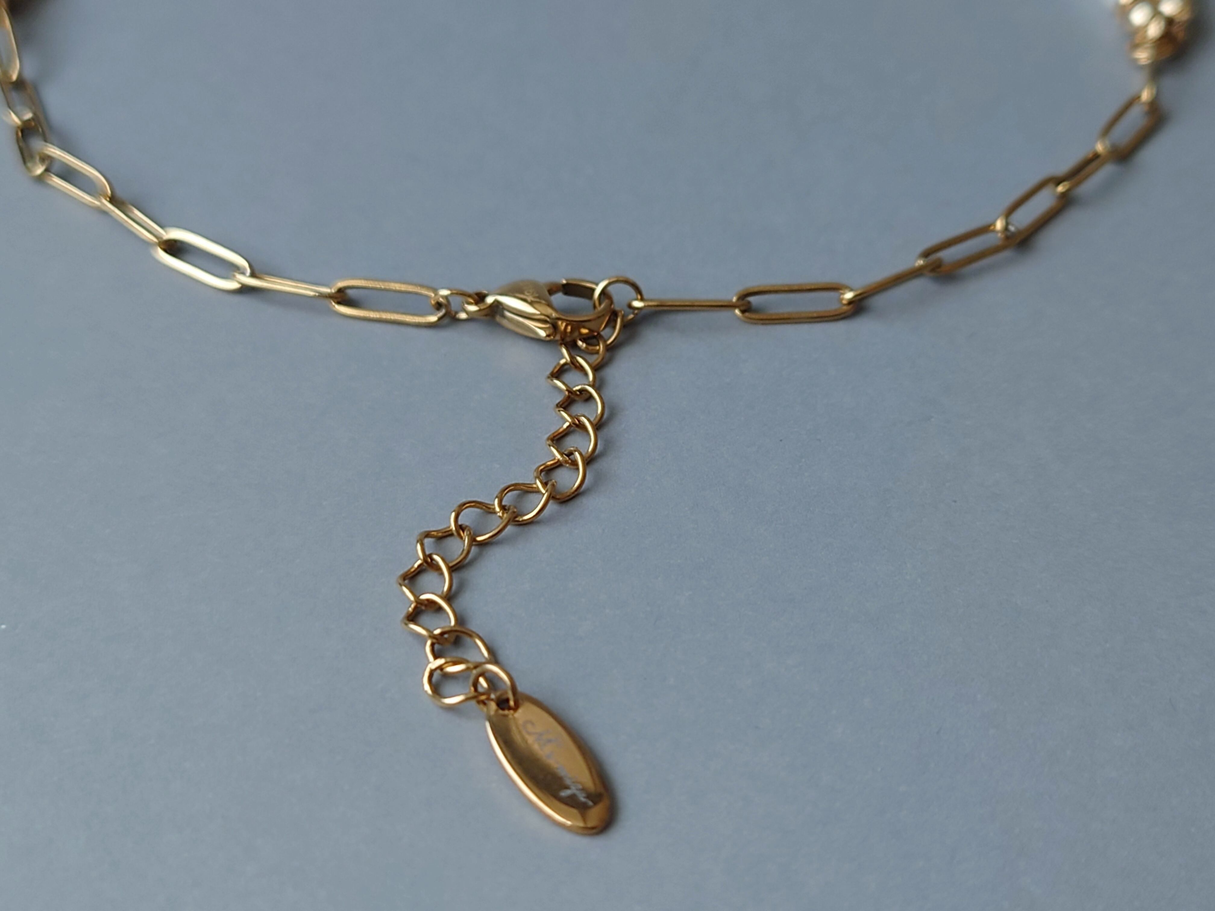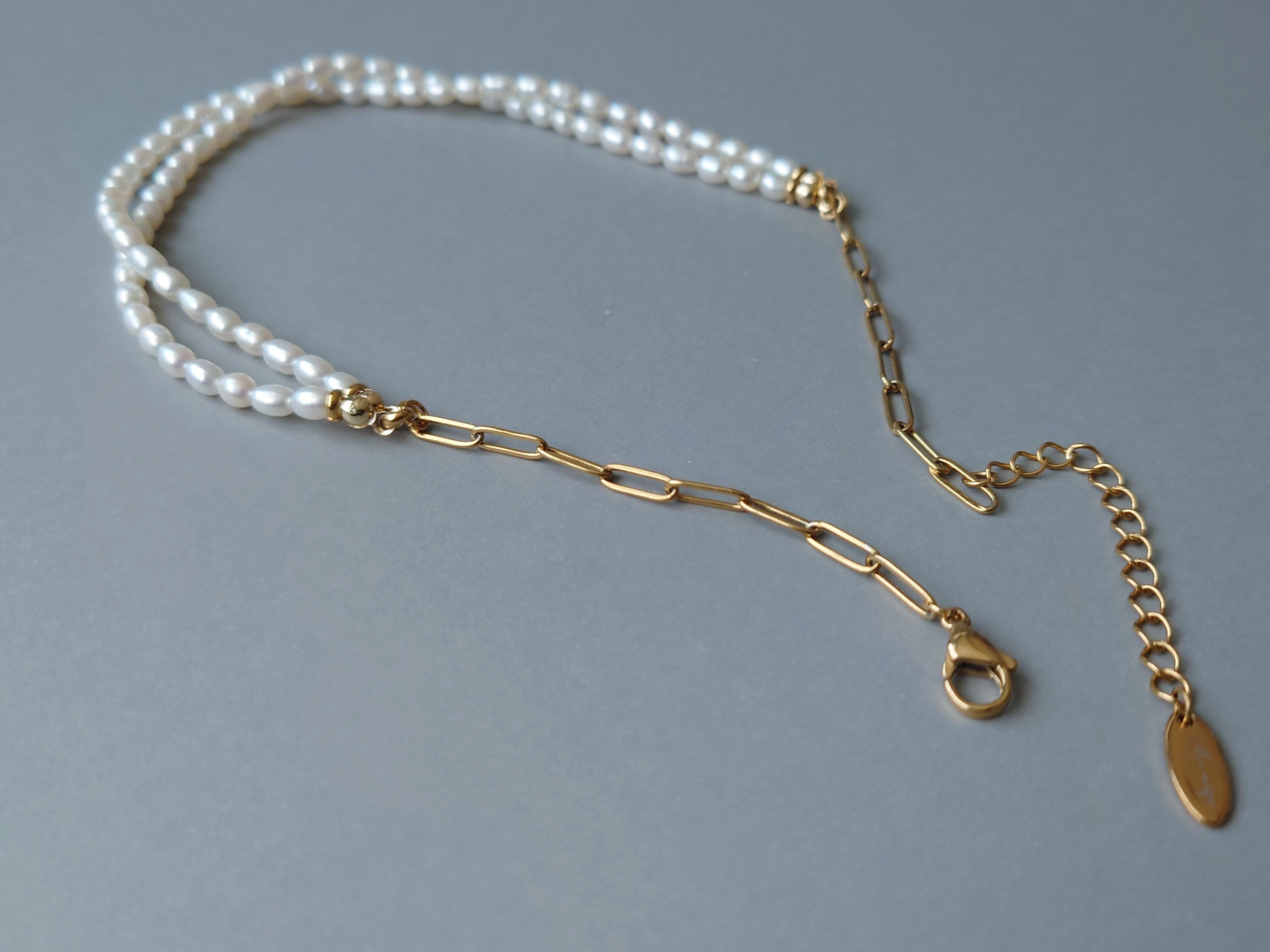 小さめ粒の淡水パールとゴールドのクリップチェーンを組み合わせたネックレス